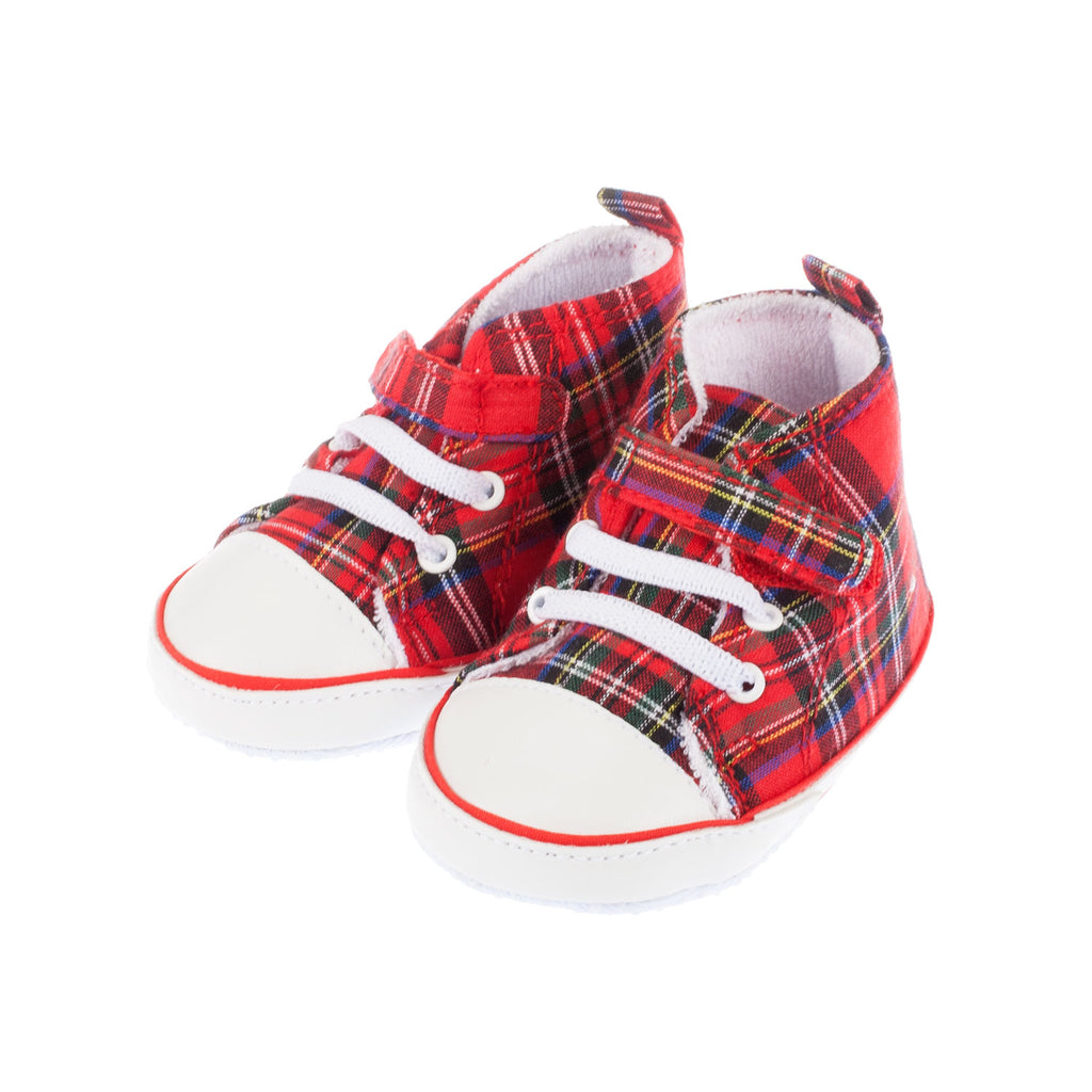 A pair of lovely baby baseball boots in vibrant Royal Stewart tartan with white toes and laces. Also features Velcro strap for added security. Great gift for your little one.