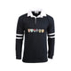 A rugby navy shirt with 6 famous nations of rugby embroidered on the front and with white V- neck collar . The new rugby shirt has been especially designed by Rugby Nations Designs - Scotland. This 100% cotton rugby shirt with two white stripes on the shoulders is made with heavyweight fabric and rubber buttons. For games and casual wear.