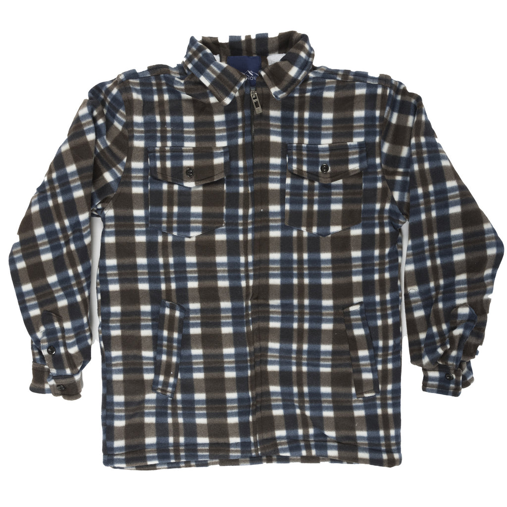 Mens Sherpa Shirt Jacket Navy/Brown Check
